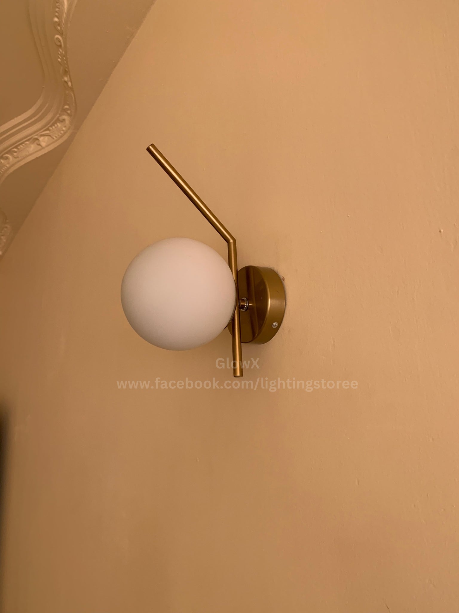 Gold base | Milky glass shade | E27 holder | Bulb not included