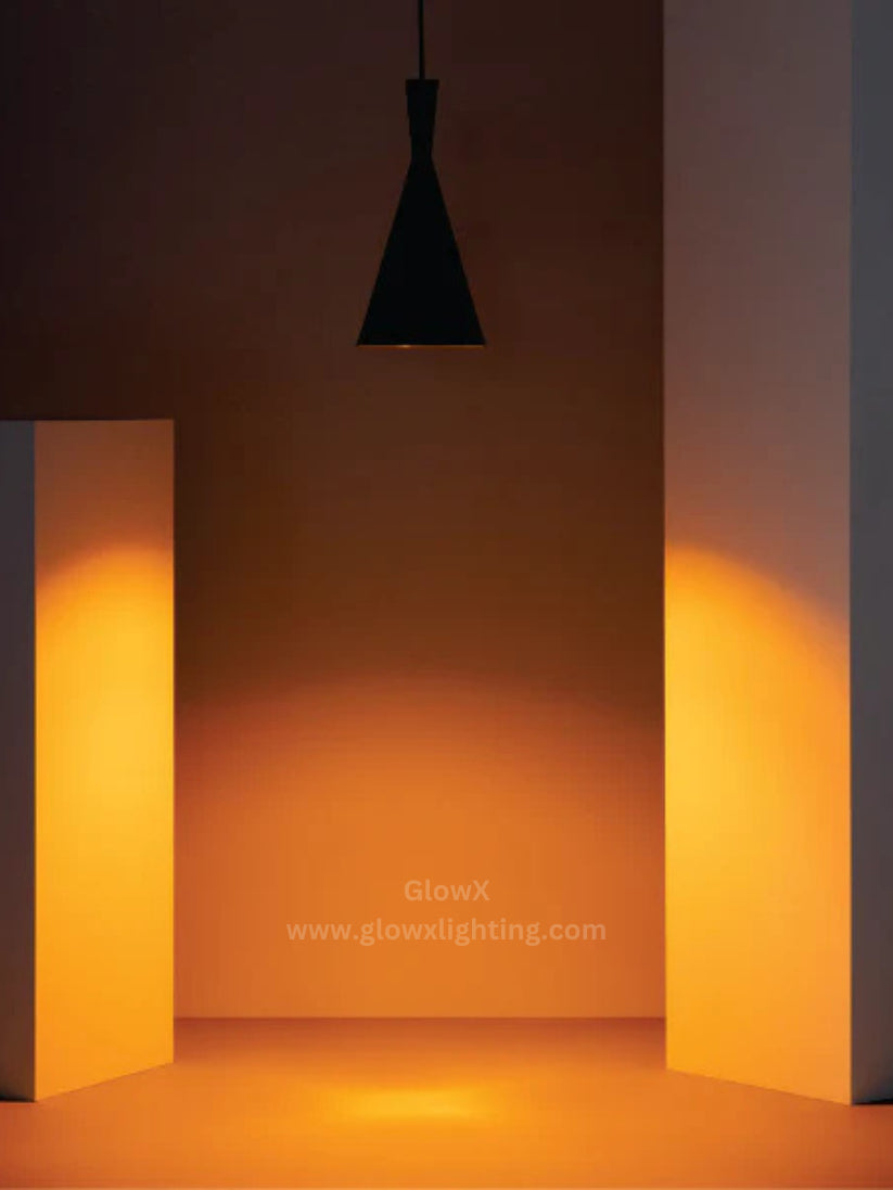 This hanging lamp is made of Aluminum. It’s black on the outside and golden on the inside. It has an E27 holder and can be used in any indoor space like homes, offices, or cafes.